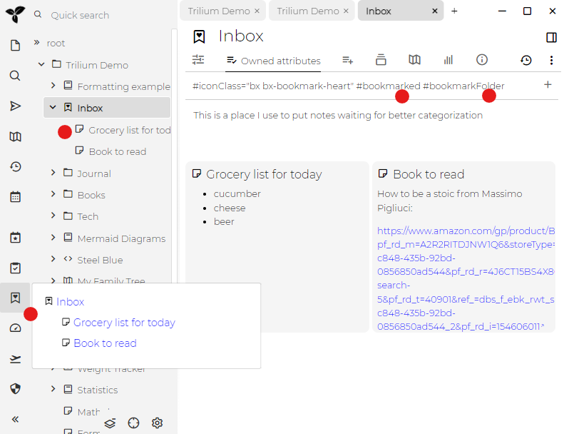 为此,您需要为笔记添加#bookmarkFolder标签。